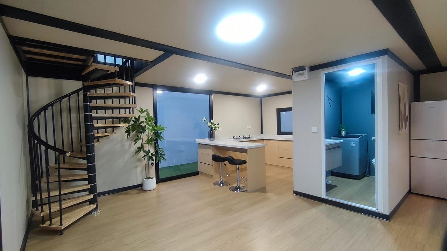 A two-bedroom, two-story contemporary style home that features a living room, full bath, kitchen, an office, and library space, lots of windows for natural light, and plenty of outdoor deck space. And it's just $40,000 with free delivery. And, if you don't like it, Amazon has a 30-day return policy (like it does on most items in its marketplace). Try returning to a traditional house after a month.